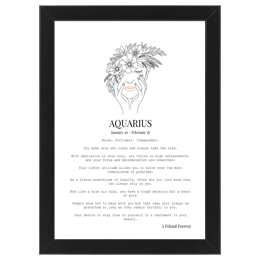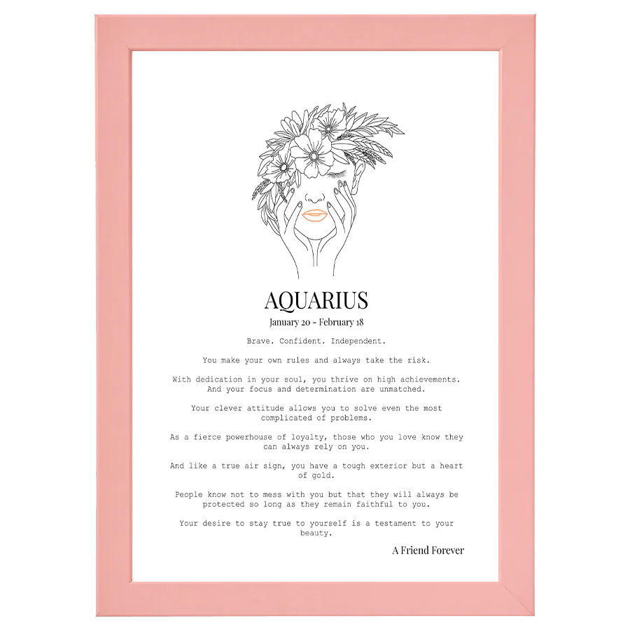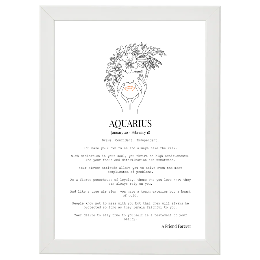 Our personalised Aquarius frame is here to remind you about all of your wonderful traits and how they help drive your success each day. They can remind you how incredible you are and how you can achieve anything you set your mind on.