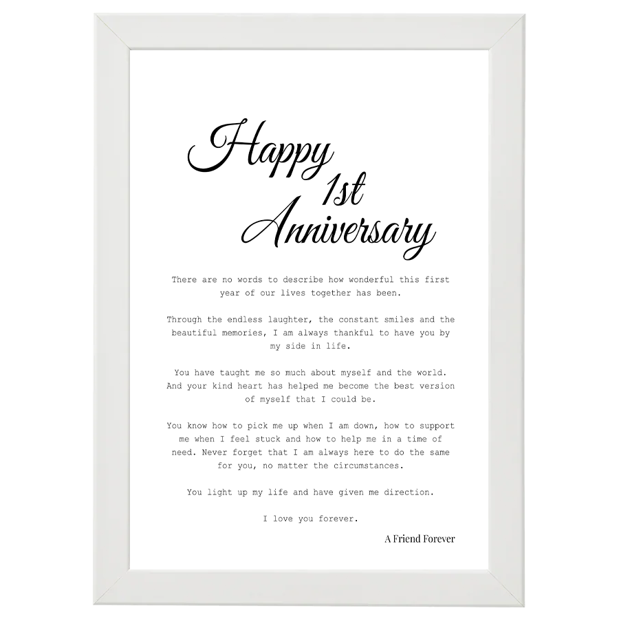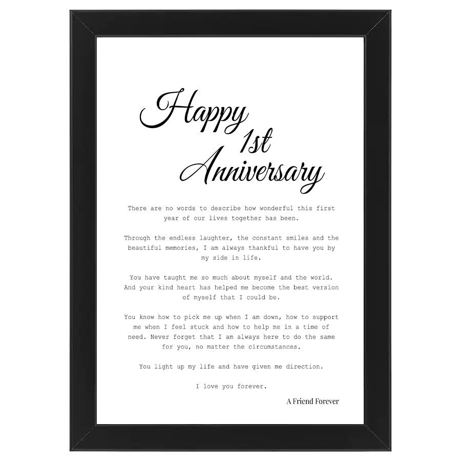 When you want to celebrate your anniversary in a uniquely special way, this personalised letter is the ideal gifting idea for a loved one. When hung in their home, it will remind them of all the times you have spent together and all the laughs you have shared. But more than that, it will bring a warm smile to their face as they envision your future together.