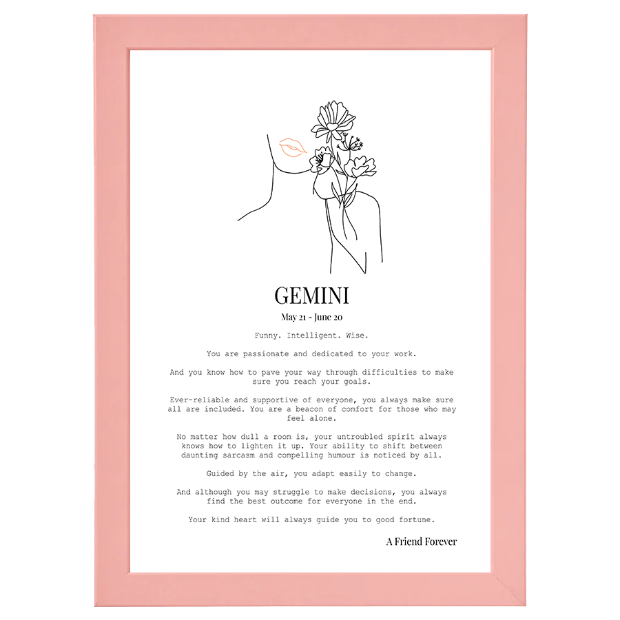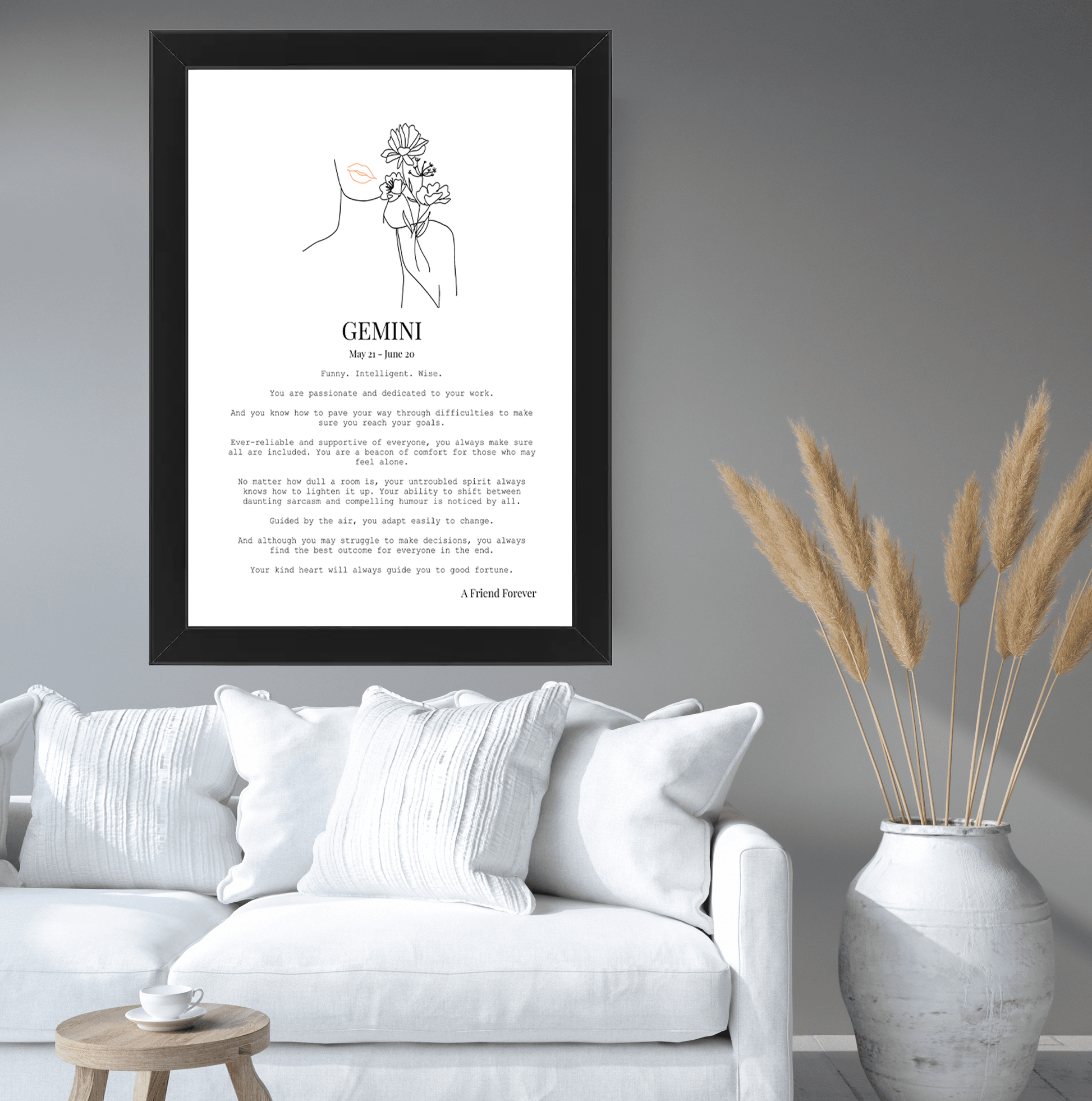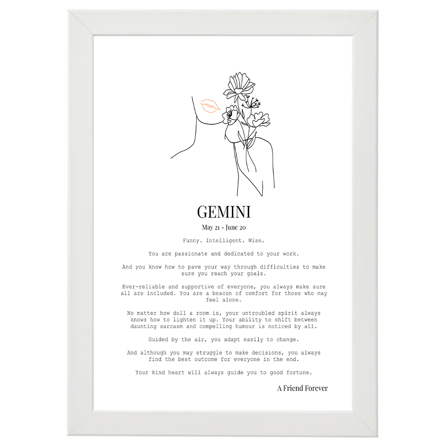 If you have a special Gemini woman in your life, this personalised letter is the gifting idea that she needs to be reminded of her brilliance. When placed on a wall, bedside table or desk, it is a fantastic way to fill her soul with a burning, everlasting energy.
