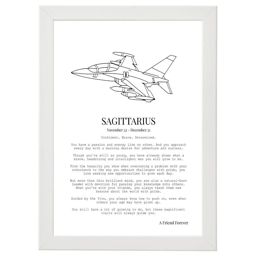 He knows how to get what he wants, and he always tries his hardest each day. Perfect for his birthday, Christmas, Easter or another special occasion, this personalised Sagittarius letter will show him just how proud he makes you.