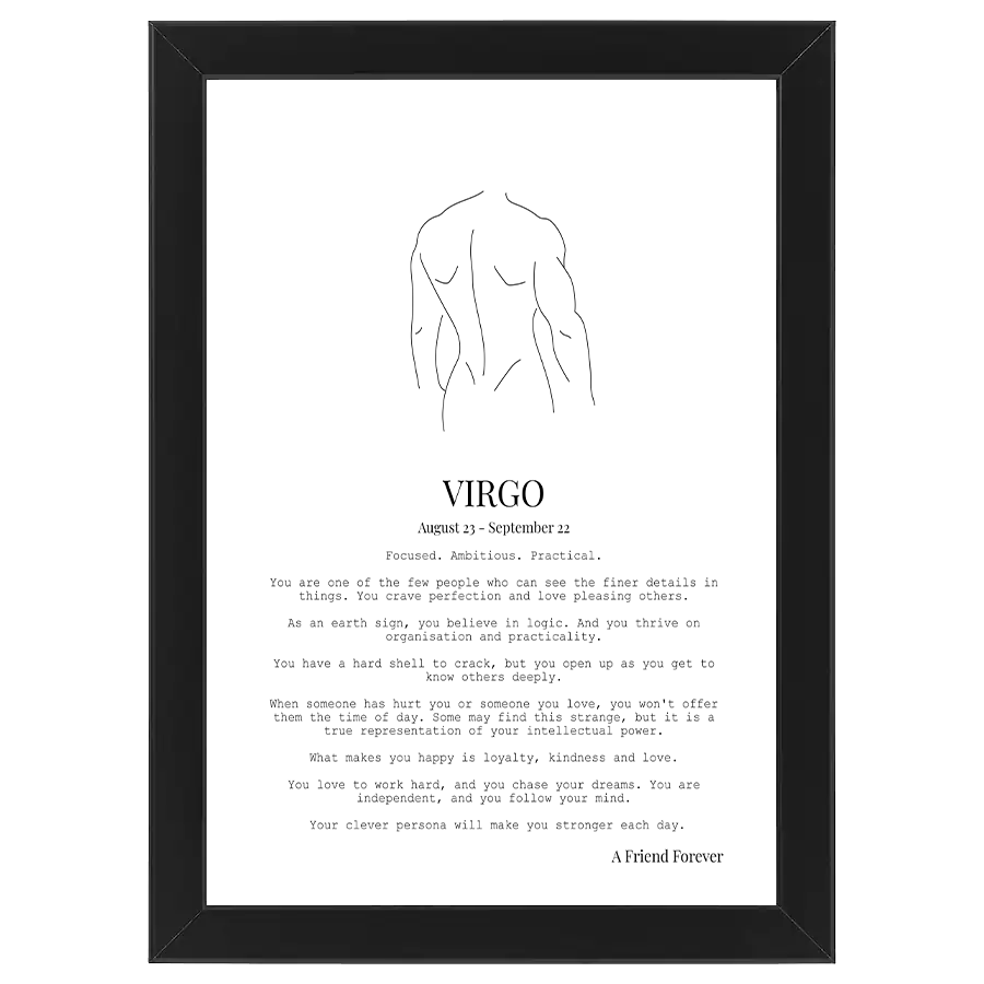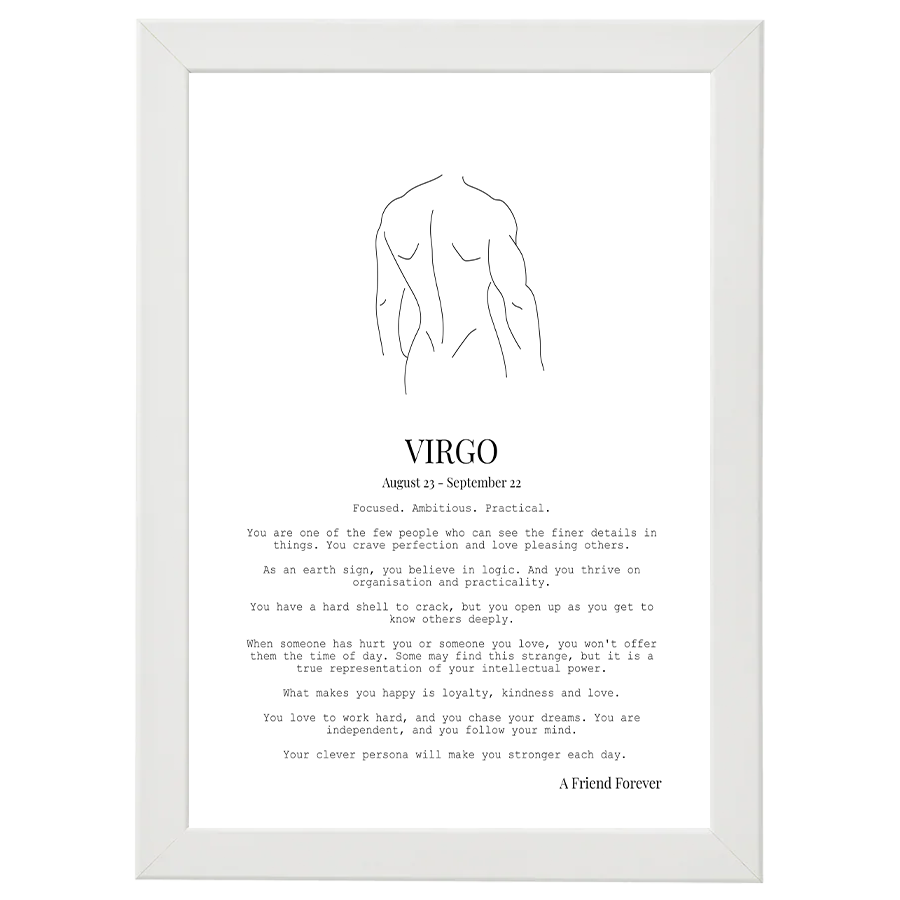 When you want to show your appreciation to the special Virgo man in your life, our personalised letters are the ideal gifting idea. Containing words that will point out all of his positive traits, is an incredible way to remind him of his true talents and strengths. When hung in his home, it will motivate him each day.